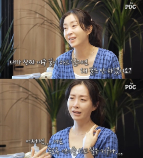 송윤아는 "나도 그런 지점들이 많았다. 너무 오래 메이킹 된 나의 이미지의 한계로 인해, 캐릭터가 제한으로 주어진다는 걸 느꼈다. 그거에 대해서 (제주도로) 도망 와 있는 것도 있다"라며 고백했다. 이어 "상황적으로 아이가 여기서 학교를 다니게 되면서 왔지만 내가 너무 일이 하고 싶으면 왜 일을 안 하겠나. 핑계 삼아 일을 계속 멀리하고 있는 상황이다. 그럼 누군가는 '너 진짜 일하기 싫어?'라고 질문하면 '난 이제 욕심이 없다. 안 해도 된다'라고 말한다. 웃으면서 답하지만 돌아선 내 마음은 그게 아니다"라며 눈물을 흘렸다. 송윤아는 "어쩌면 나도 죽도록 연기를 하고 싶어 하는 걸 수도 있겠다는 생각이 들었다"라며 고개를 끄덕였다.